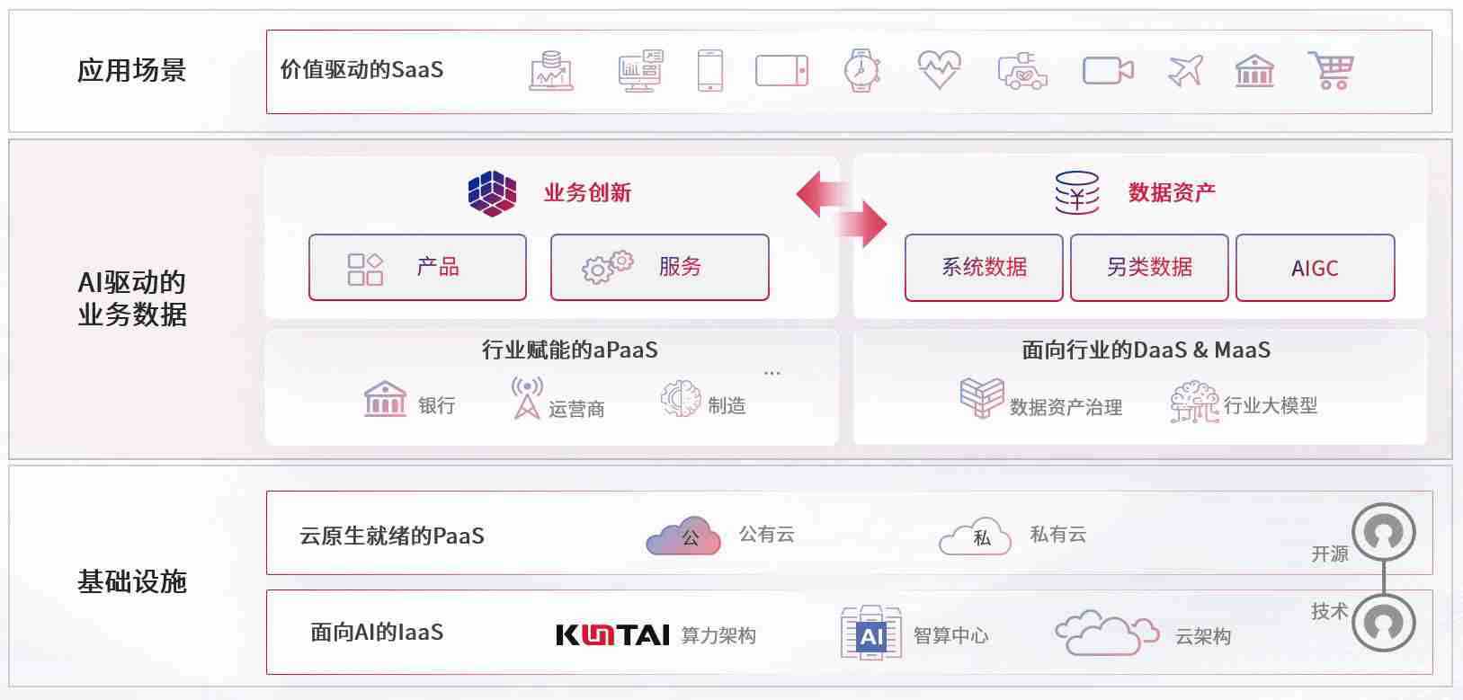 数字时代,,围绕企业数字化转型的关键要素,,尊龙z6数码开创性的提出数云融合战略和技术体系框架,,着力在云原生、、、数字原生、、、、AI原生和信创产业上架构产品和服务能力,,为处在不同数字化转型阶段的快消零售、、、、汽车、、、、金融、、、、医疗、、、政企、、、、教育、、运营商等行业客户提供泛在的敏捷IT能力和融合的数据驱动能力,,,构建跨界融合创新的数字业务场景和新业务模式,,助力企业级客户建立面向未来的核心能力和竞争优势,,,,全面推动社会的数字化、、、智能化转型升级。。