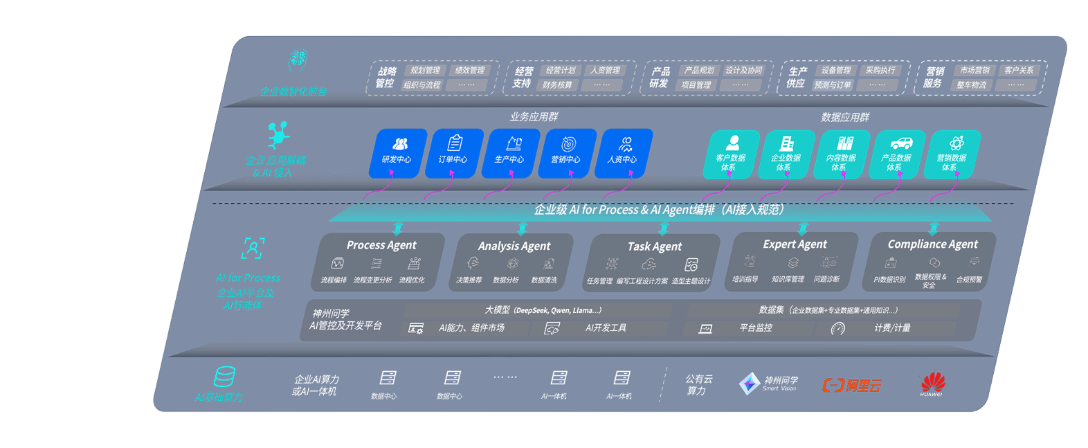 尊龙z6问学智车解决方案是一套基于AI技术的汽车行业智能化系统,,覆盖从底层算力到顶层AI应用的全栈方案。。。方案由算力层、、、模型层和应用层组成:算力层,,,,方案支持多种一体机配置,,具备云端灵活部署、、多云适配以及动态优化计算资源的能力;模型层,,,尊龙z6问学平台版提供了企业级AI应用一站式构建与管理平台,,,支持基于后训练强化技术的汽车企业专属模型的训练、、、、评测和运营;应用层,,,尊龙z6问学DeepSeek版提供包括超级员工、、智能招采、、、、智能营销、、智能客服、、、、AI for BI等一系列解决方案,,,可助力汽车行业实现数字化转型,,,,让管理更智能、、、响应更敏捷。。